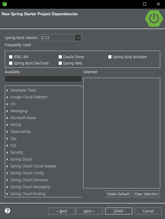 - Service URL : 해당 주소(Spring initializer)로 연결하여 프로젝트를 생성 (대신 생성해준다)