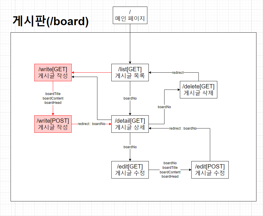 - 게시글 작성은 form에서 전송한 DTO를 받아서 BOARD 테이블에 등록(INSERT)을 한다
