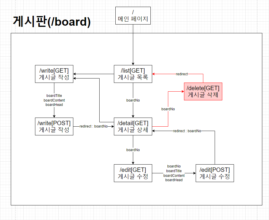 - 게시글 삭제 페이지로 이동하기 위해서는 해당 게시글 번호(boardNo)가 필요하다