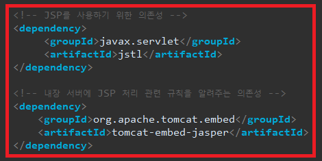 - (추가) jsp에 대한 의존성은 수동으로 추가해야 한다