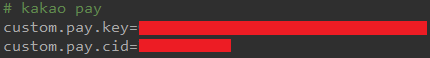 - 보안을 위해 Admin Key와 cid(가맹점 코드)를 사용자 정의 속성으로 설정한 후 .gitignore에 추가(업로드 방지)