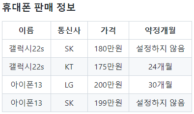 - 월 할부금은 판매가격을 약정기간동안 나눠서 낸다고 가정하고 계산