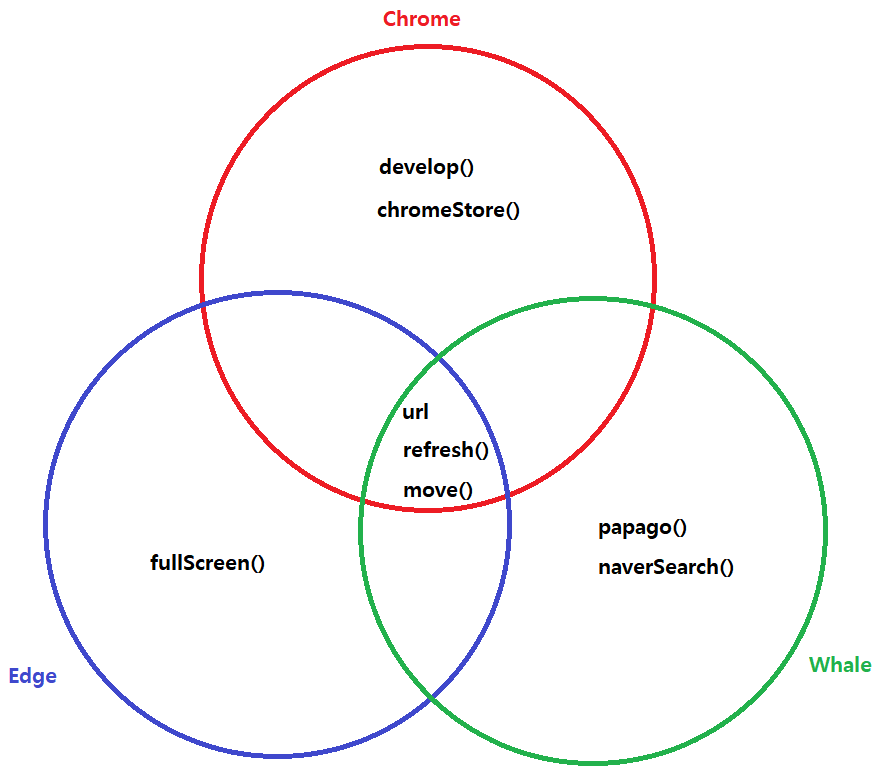 - 브라우저들을 클래스로 구현(크롬, 엣지, 웨일)